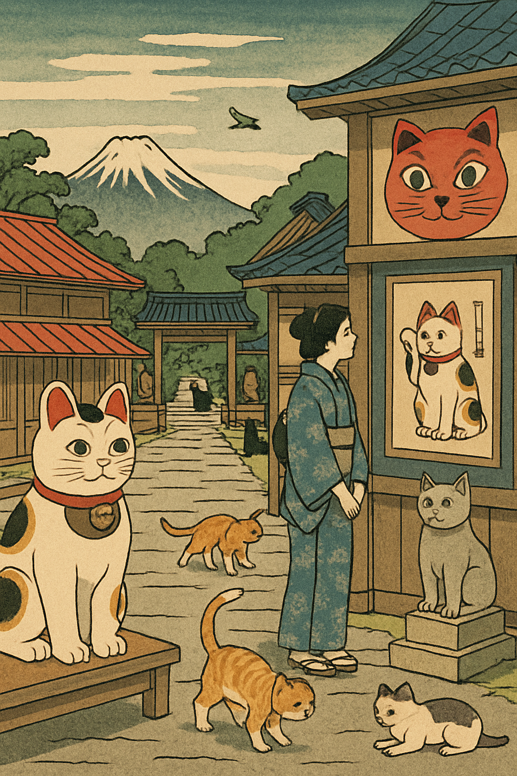 Feline figures started appearing in ukiyo-e prints, folktales, kabuki plays, and literature. Over time, cats transcended their role as pest control — they became symbols of prosperity and mystery, often associated with the supernatural and spiritual.